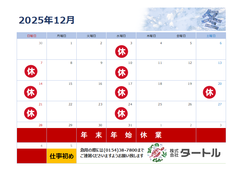 2025年4月 休業日のご案内